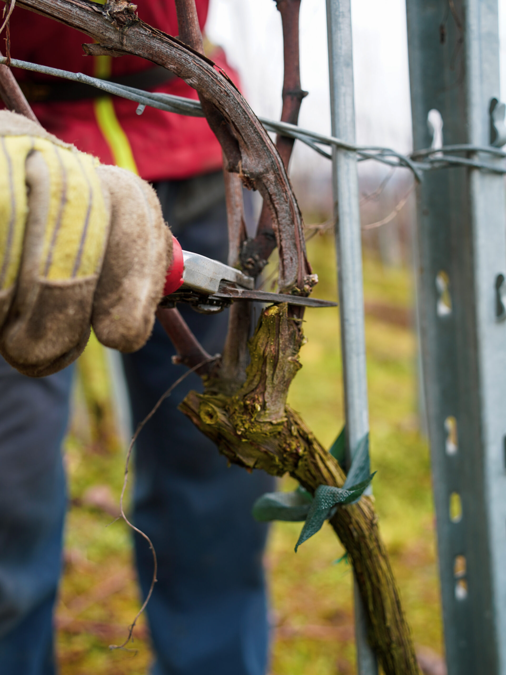 Auch in den kalten Januartagen zieht es in die Weinberge – bis Mitte März sollen die Reben zurückgeschnitten sein. Je nach «Erziehungsart» der Reben, werden die Schosse entsprechend gekürzt.